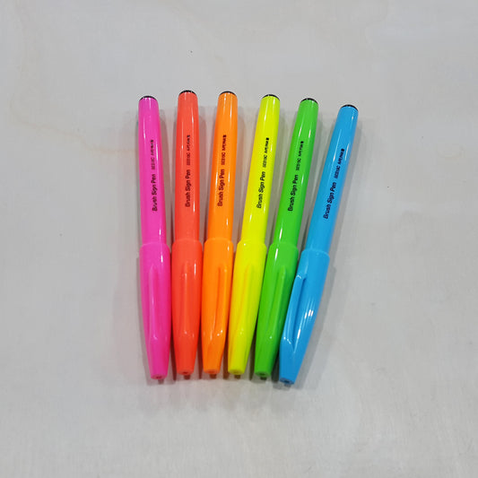 Pentel Fluorescent Brush Sign Pen 柔繪筆_螢光色系