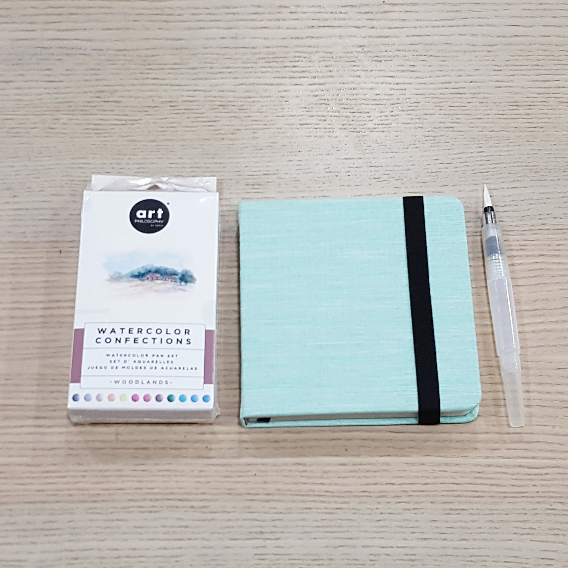 Set A:萬物色系水彩+湖水綠A5全棉中粗紋+儲水筆