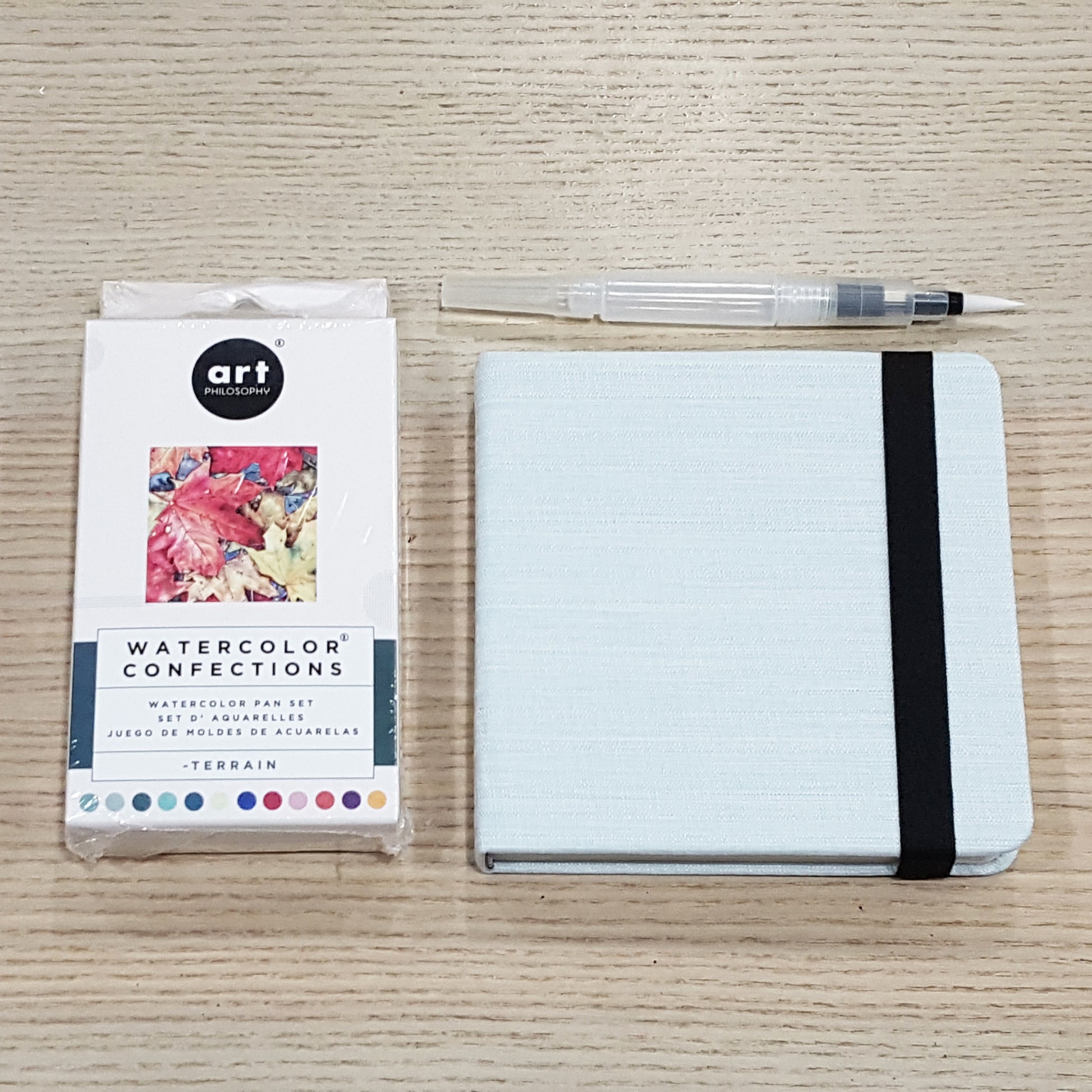 這款套裝有6個款式,每款包括一盒11色水彩磚顔料、A5/正方形水彩本及1支儲水筆,讓你能夠隨時隨地都可以寫生,記錄生活上每一個當下,非常適合自用或送禮!