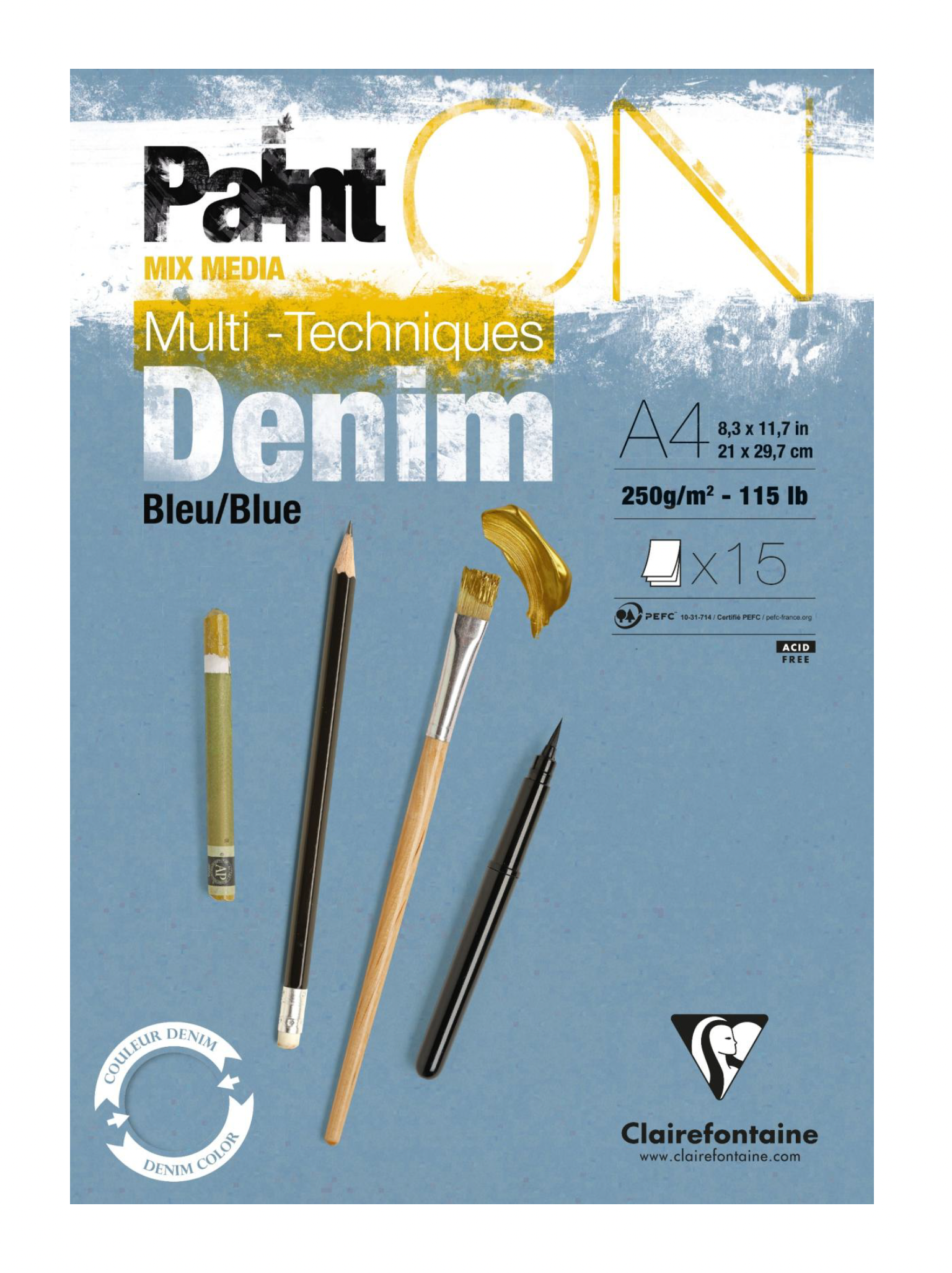 Paint'ON Multi Techniques A4 是一款高品質的多技術墊,此款配有15張牛仔藍色紙張。紙張材質厚度達250g,所以能 夠完美地承受反覆的擦除和刮擦。