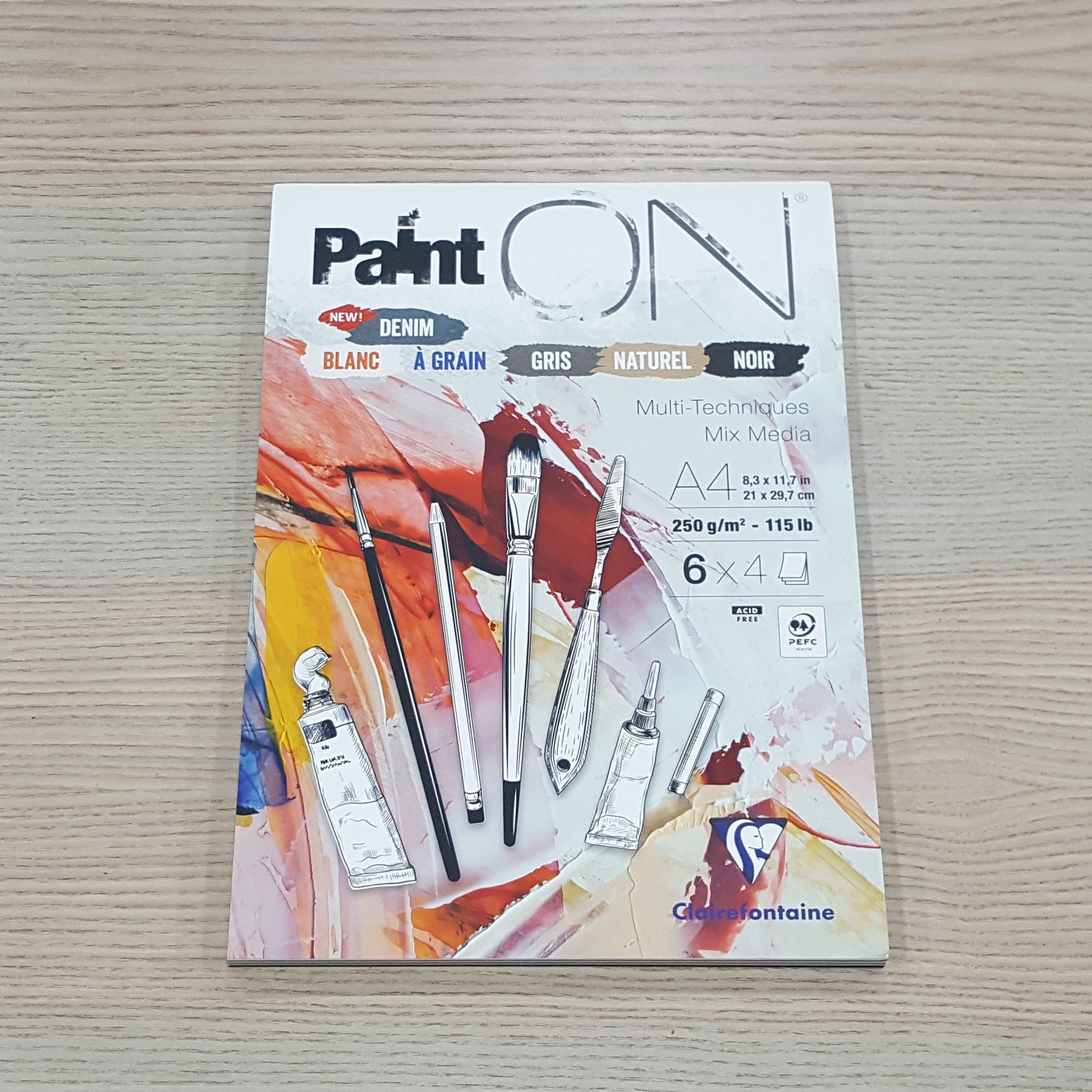 Clairefontaine 的 Paint'On Gris 紙張是尋求兼具多功能性、耐用性和美觀性的混合媒介優質紙,此款畫簿的紙張顔色共有6色,每色各有4張,更有牛仔(Denim)特別色。