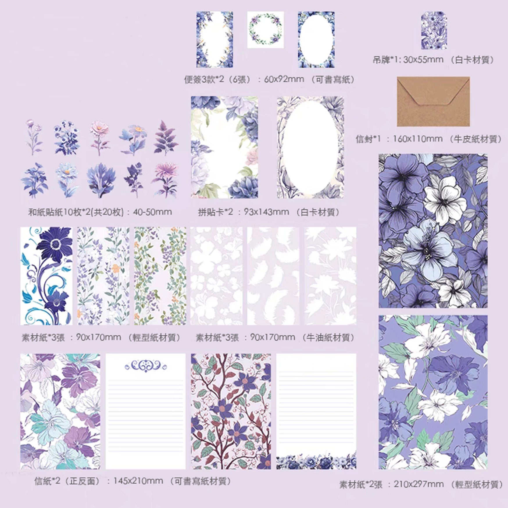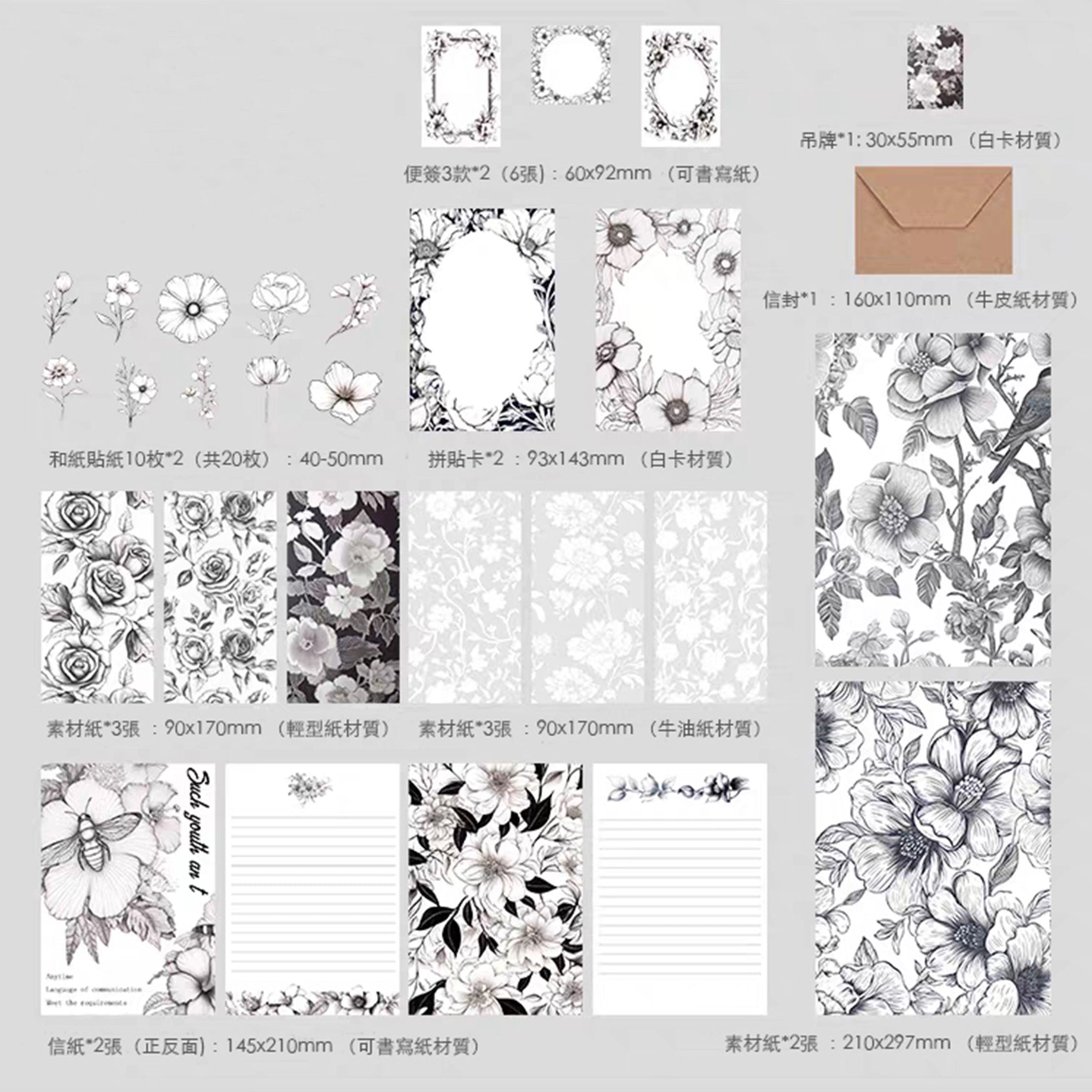 花卉復古系列貼紙信封信紙素材紙手帳包